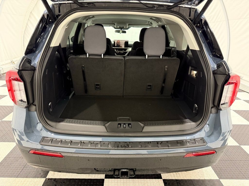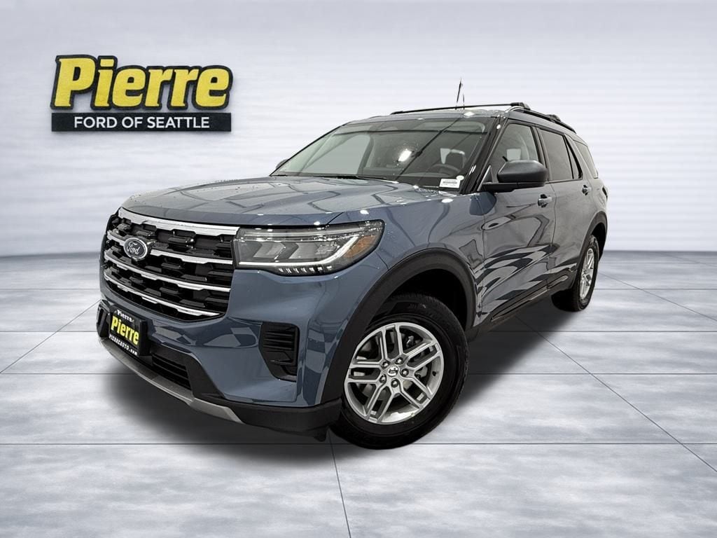 2025 Ford Explorer Active AWD in Vapor Blue with Dark Space Gray cloth interior ** 2.3L EcoBoost 4-cylinder + 10-speed automatic ** Equipment Group 200A ** 18" aluminum wheels ** 3rd-row 50/50 fold-flat seating ** SYNC 4 w/ touchscreen, wireless Apple CarPlay/Android Auto, Bluetooth, and rearview camera ** Ford Co-Pilot360 safety suite (pre-collision assist w/ AEB, lane-keeping system, blind spot monitoring, rear cross-traffic alert, and more) ** Power liftgate, tri-zone climate control, remote keyless entry w/ push-button start ** Floor liners w/ 1st/2nd-row carpet mats ($160) ** 5th spare wheel and jack (included) ** Front license plate bracket (no charge) ** Dealer-installed: First Aid Kit ($60) ** Dealer-installed: Roof Rail Crossbars ($420) ** Dealer-installed: Safe Deposit Console Vault ($420). EPA-rated 23 MPG combined (20 city/27 hwy); est. annual fuel cost $2,150; you spend about $2,250 more in fuel over 5 years vs. average new vehicle. new MSRP was $46,